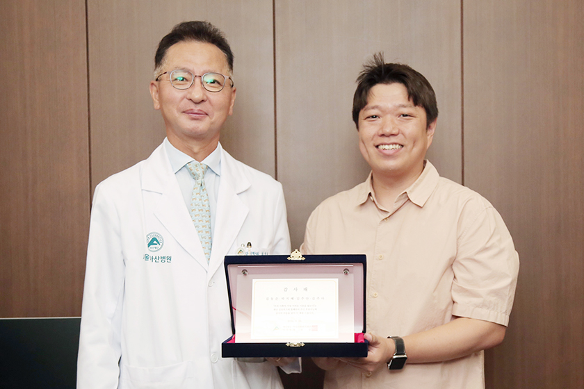 김동준 후원자가 경제적으로 어려운 소아 불우환자를 위해 책 인세 1천만 원을 후원했다. 2024년 8월 26일 진행된 감사패 증정식에는 김동준 후원자, 배우자 박지혜 님, 최재원 대외협력실장 등이 참석했다.
