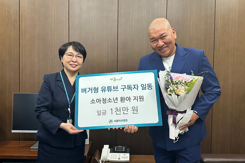 배우 박효준의 유튜브 채널을 운영 중인 버거형엔터테인먼트에서 경제적으로 어려운 소아청소년 환자를 위해 불우환자 지원기금 1천만 원을 후원했다. 버거형엔터테인먼트에서는 2022년부터 지속적으로 후원하고 있고 총 누적 후원금은 1천 5백만 원이다. 2023년 10월 23일 진행된 감사패