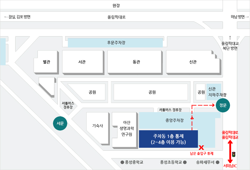 [주차동 1층 전체 통제 / 2~4층 이용 가능]